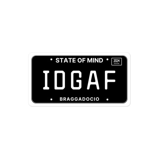 Vanity Plate: IDGAF Vinyl Sticker